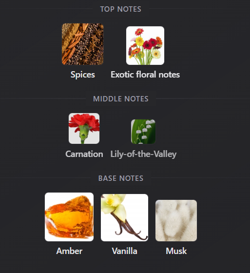 amber . vanilla . floral . powdery . warm spicy . musky . animalic . sweet